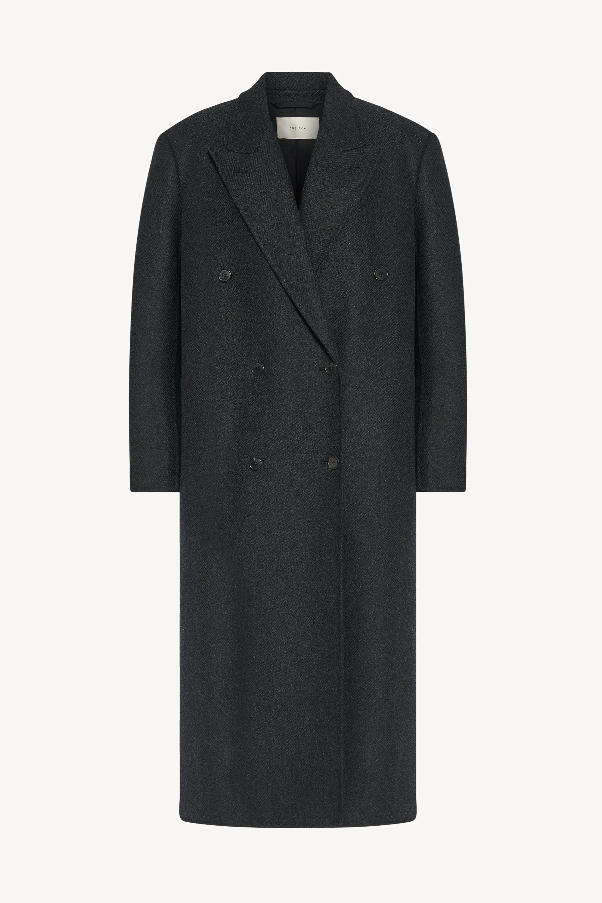 Double-breasted tailored coat in washed double-faced wool and cashmere with peak lapel, slant welt pockets, and horn button closure. More information - 88% Wool, 12% Cashmere - Lined in 100% Silk - Made in Italy - Style: 10372W4067DCO