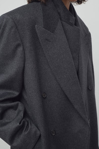 Double-breasted tailored coat in brushed midweight cashmere with wide peak lapel, fitted waistline, and side seam pockets. More information - Interior buttoned besom pocket - Six horn button closure - 100% Cashmere - Lined in 100% Silk Habotai - Made in Italy - Style: 8409W2842CCM