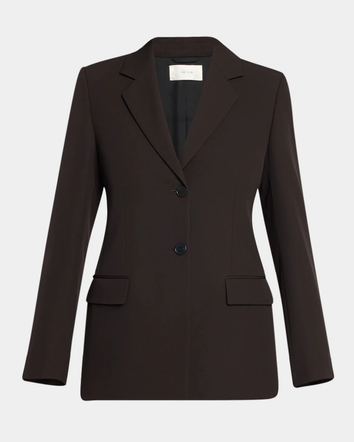 - THE ROW "Harlee" jacket with padded shoulders - Notch lapels; single-breasted front - Long sleeves; button cuffs - Side flap pockets - Tailored fit - Center-back vented hem - Virgin wool/cotton - Made in Italy