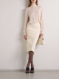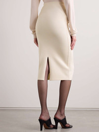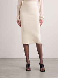 EDITORS'NOTES The slim pencil silhouette of The Row's 'Hodette' skirt is balanced by a slit at the back, which allows you to move comfortably. It's made from compact stretch-knit that gently smooths your frame. Wear yours as part of a tonal outfit to channel the brand's minimalist aesthetic. SIZE & FIT - Fits true to size, take your normal size - Knee-length, designed to be worn at the waist - Mid-weight, stretchy fabric - Model is 177cm/ 5'10" and is wearing a size Small DETAILS & CARE - Ecru stretch-knit - Slips on - 77% viscose, 16% polyester, 5% polyamide, 2% elastane