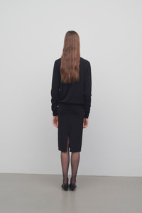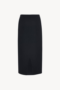 Mid-length skirt in extra fine viscose knit with straight silhouette and center back slit detail. More information - 77% Viscose, 16% Polyester, 5% Polyamide, 2% Elastane - Made in Italy - Style: 8292Y821BLK
