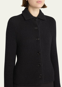 THE ROW "Icarus" knit jacket Spread collar; button front Long sleeves Relaxed fit Cashmere Made in Italy Model is 5'10"/177cm. Online Inquiries: BGS21_B9MAL| Store Inquiries: #4912161
