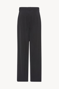 Low-waisted pant in lightweight viscose wool suiting with loose fluid leg, front double pleats and side slash pockets. More information - 60% Viscose, 40% Virgin Wool - Made in Italy - Style: 5629W1973BLK