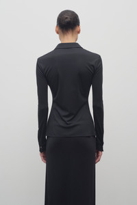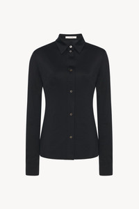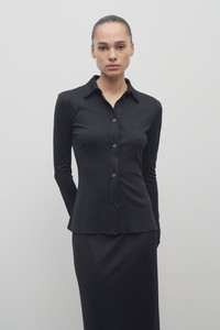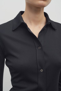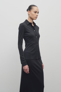 Fitted button-up shirt in fluid silk jersey with straight hem and exposed front button placket. More information - 50% Viscose, 50% Silk - Made in Italy - Style: 8931K225BLK