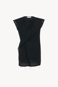 Asymmetrical layered top in gauzy cotton organza with crew neckline, frayed hem detailing, and concealed side zipper closure. More information - 100% Cotton - Lined in 100% Silk - Made in Italy - Style: 8933W3927BLK