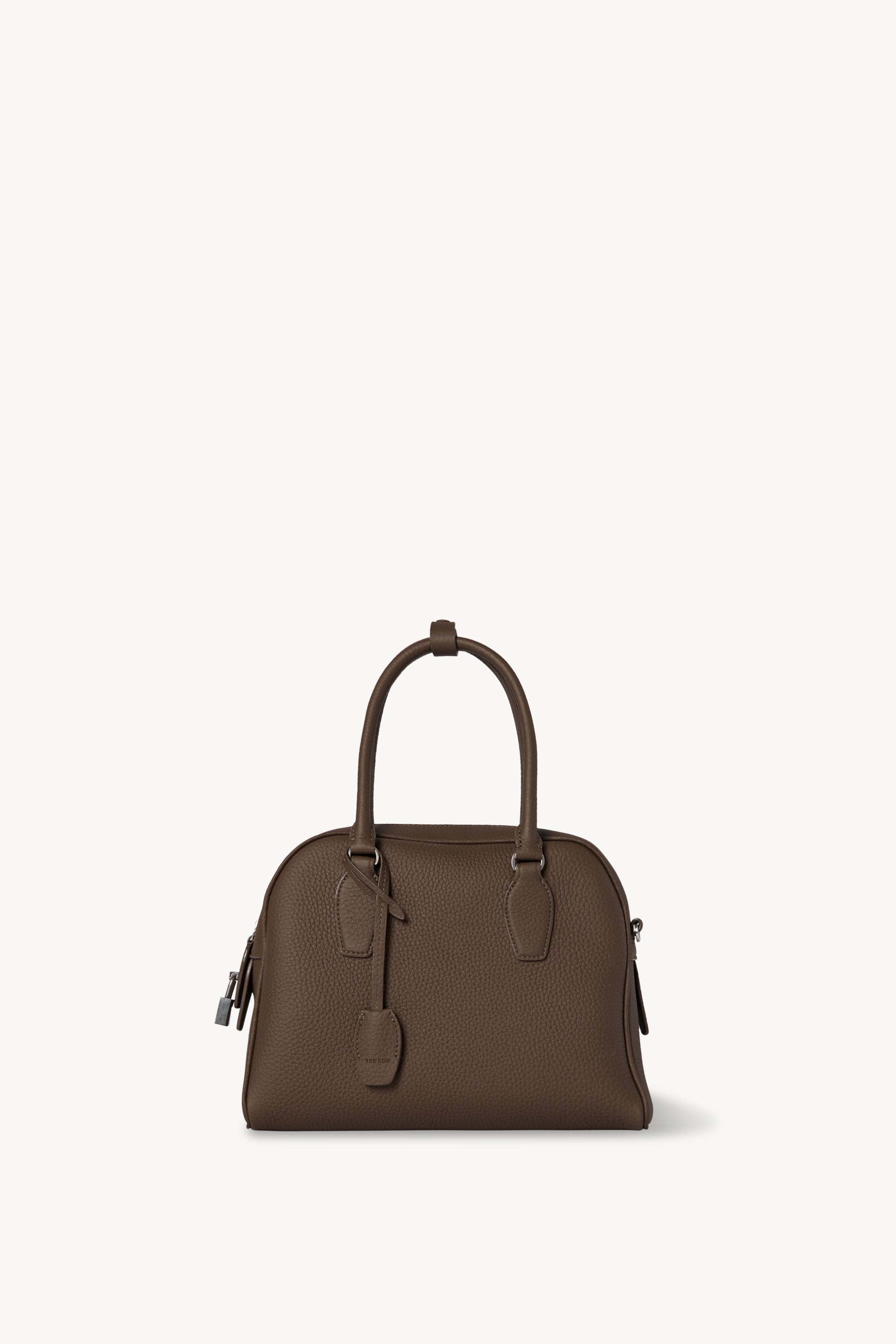 Updated bowling bag in textured calfskin leather with tubular handles, branded metal padlock and key, and zipper closure. More information - 9.45 x 3.15 x 7.48 in. - Handle: 5.31 in. - 100% Calfskin Leather - Lined in 100% Leather - Made in Italy - Style: W1734L129DOK