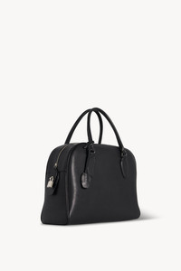 Updated bowling bag in polished saddle leather with tubular handles, branded metal padlock and key, and zipper closure. More information - 12 x 9.5 x 12 in. - 4.75 in. Handle drop - 100% Calfskin Leather - Lined in 100% Leather - Made in Italy - Style: W1595L72BAS