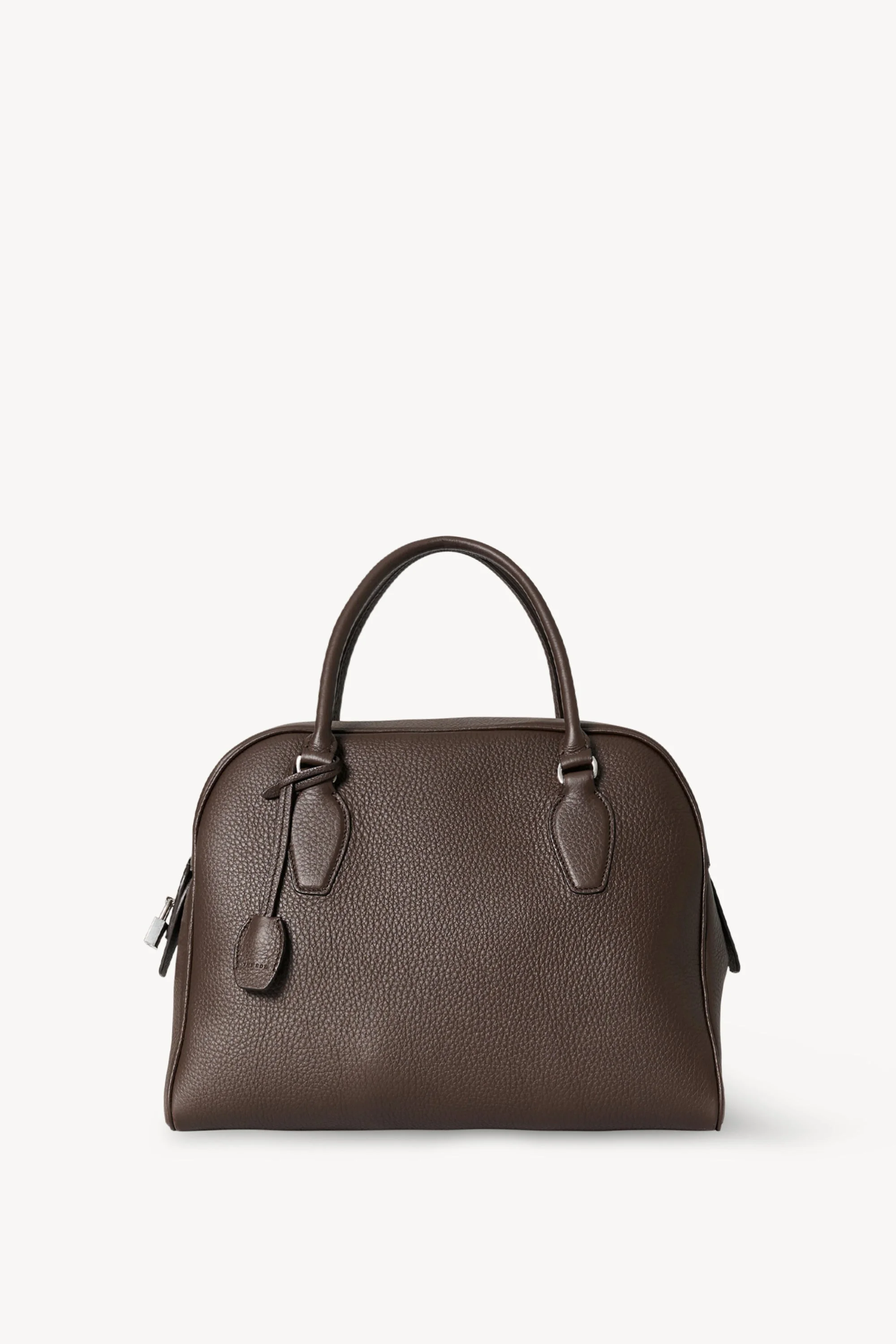 Updated bowling bag in textured calfskin leather with tubular handles, branded metal padlock and key, and zipper closure. More information - 100% Calfskin Leather - Lined in 100% Lambskin Leather - Made in Italy - Style: W1595L129DEOS