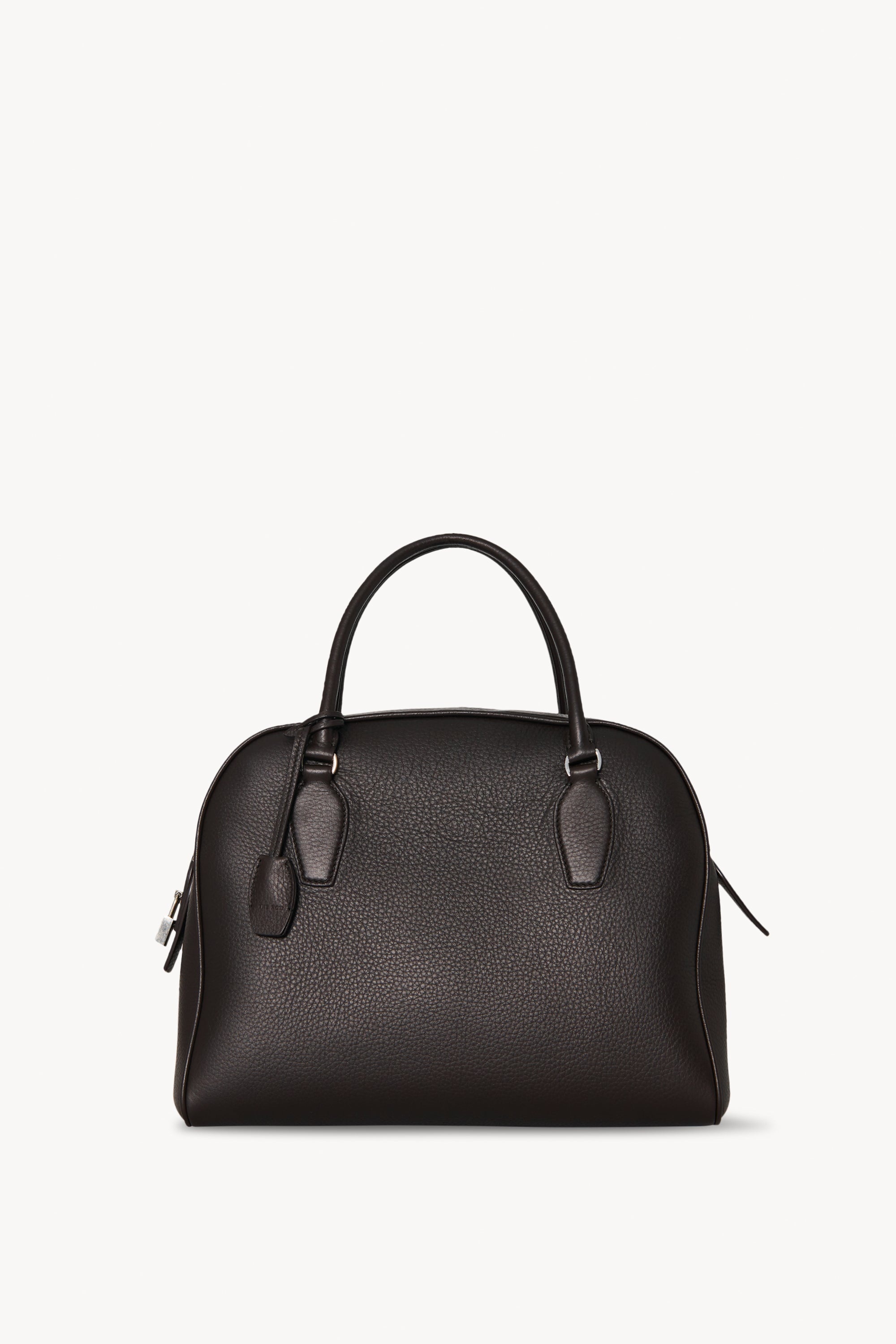 Updated bowling bag in softly grained deerskin leather with tubular handles, branded metal padlock and key, and zipper closure. More information - 12 x 9.5 x 12 in. - 4.75 in. Handle drop - 1 Interior zipped pocket, 1 slot pocket - 100% Calfskin Leather - Lined in 100% Lambskin Leather - Made in Italy - Style: W1595L23WDBRS