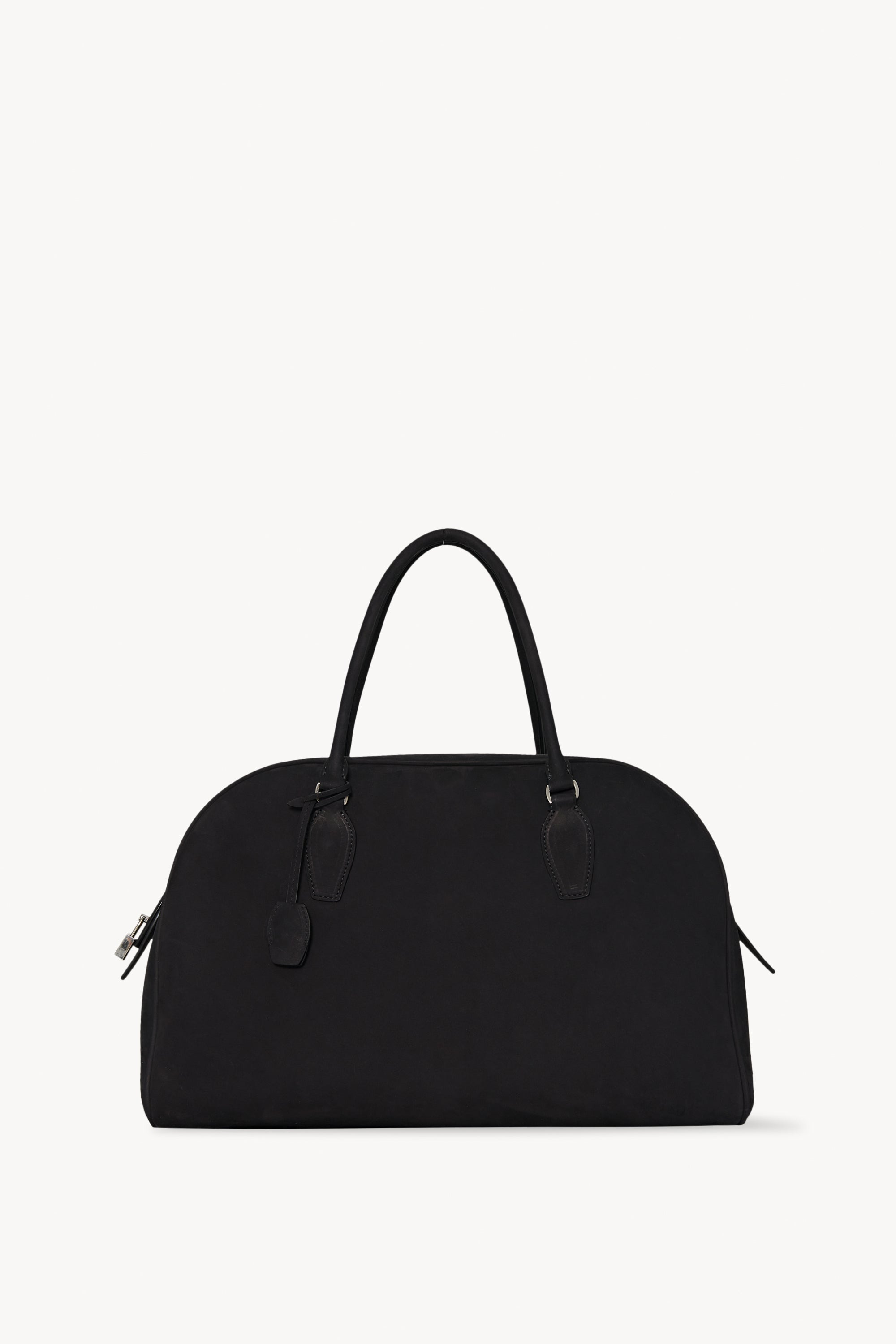 Updated bowling bag in nubuck suede leather with tubular handles, branded metal padlock and key, and zipper closure. More information - 15.3 x 10 x 5.5 in. - 7.1 in. Handle drop - 1 Interior zipped pocket, 1 slot pocket - 100% Calfskin Suede Leather - Lined in 100% Lambskin Leather - Made in Italy - Style: W1594L81BLANS