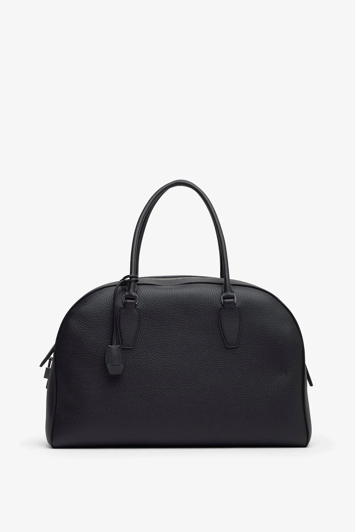 Black leather bowling bag from The Row. The India 15.75 is made of matte grained calf leather, featuring two tubular top handles, branded metal padlock and key and zip closure, lined in soft nappa leather. - Measurements: L41 x H22 x W13.5 cm - Made in Italy Product Code: W1594-L129-BAS