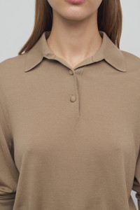 Long-sleeved polo top in fine wool jersey with 3-button collar and lightly sheer finish. More information - Self-covered buttons - 100% Wool - Made in Italy - Style: 8442Y590CML