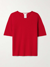 EDITORS'NOTES Refined, elevated basics like this 'Ipar' T-shirt are The Row's specialty. Finely knitted in Italy from cashmere, it comes in a vibrant 'Firetruck' and has a relaxed shape with dropped shoulders. SIZE & FIT - Fits true to size, take your normal size - Designed for a relaxed fit - Lightweight knit - Model is 175cm/ 5'9" and is wearing a size Small DETAILS & CARE - Red cashmere - Slips on - 100% cashmere - Hand wash - Designer color: Firetruck