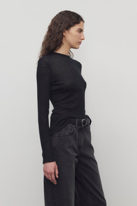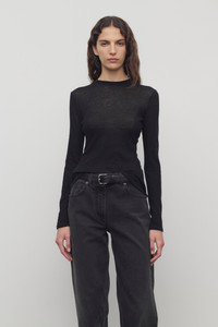 Long-sleeved crewneck top in featherlight cashmere jersey with ribbed collar and slim fit. More information - 100% Cashmere - Made in Italy - Style: 5590K52BLK