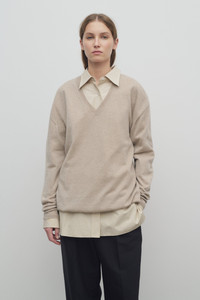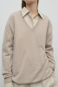 Seamless sweater in ultrafine cashmere knit with classic v-neckline, ribbed neckline, cuffs, and hem, and slightly oversized fit. More information - 100% Cashmere - Made in Italy - Style: 8668Y751BEL