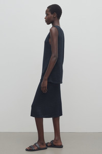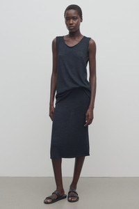 Mid-length pull-on skirt in textured silk knit with fitted waist and slightly flared hem. More information - 97% Silk, 3% Polyamide - Made in Italy - Style: 8801Y911DPE