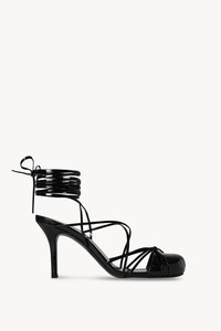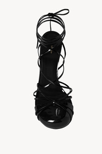 Playful strappy heeled sandal in shiny patent leather with closed cap toe and leather ankle straps. More information - 3.5 in. Heel - 100% Leather - Made in Italy - Style: F1405P73BLK