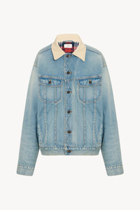 Oversized denim jacket in lightweight indigo denim with corduroy collar, cotton flannel lining, front flap and welt pockets, and front button placket. More information - 100% Cotton - Lined in 100% Cotton - Made in Japan - Style: 8938W3932LIN