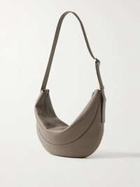EDITORS'NOTES The Row's 'Jouve' bag has a curved, crescent shape that slings comfortably over your shoulder to be worn cross-body. It's made from textured-leather in a versatile 'Military Beige' shade and has an adjustable strap. There's room inside for your wallet, a small planner and a few cosmetics for touch-ups throughout the day. SIZE & FIT This item’s measurements are: - Height: 26cm / 10.2in - Width: 30cm / 11.8in - Depth: 2cm / 0.8in DETAILS & CARE - Mushroom textured-leather (Cow) - Adjustable shoulder strap - Leather lining - Zip fastening along top - Designer color: Military Beige