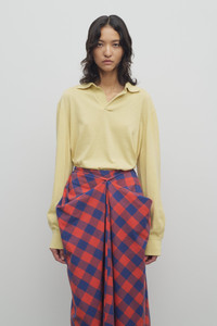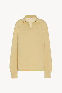 Long-sleeved polo sweater in textured natural silk with open front placket, buttoned shirt cuffs, and boxy fit. More information - 100% Silk - Made in Italy - Style: 8702Y901PLY