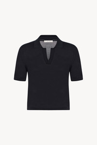 Cropped polo top in finely knit silk with open front placket, and slim fit. More information - 100% Silk - Made in Italy - Style: 8706Y885BLK