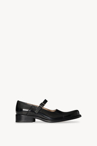 Structured Mary Jane shoe in glossy calfskin leather with elongated round toe, extended leather sole, and stacked leather heel. More information - 100% Calfskin Leather - Leather sole - Made in Italy - Style: F1756L802BLK