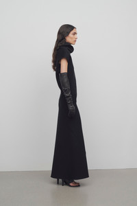 Handcrafted, bias-cut twisted panel dress in double-faced cashmere with A-line silhouette, asymmetrical neckline that folds at back, and sculptural sleeves. More information - 100% Cashmere - Made in Italy - Style: 8356W3196BLK