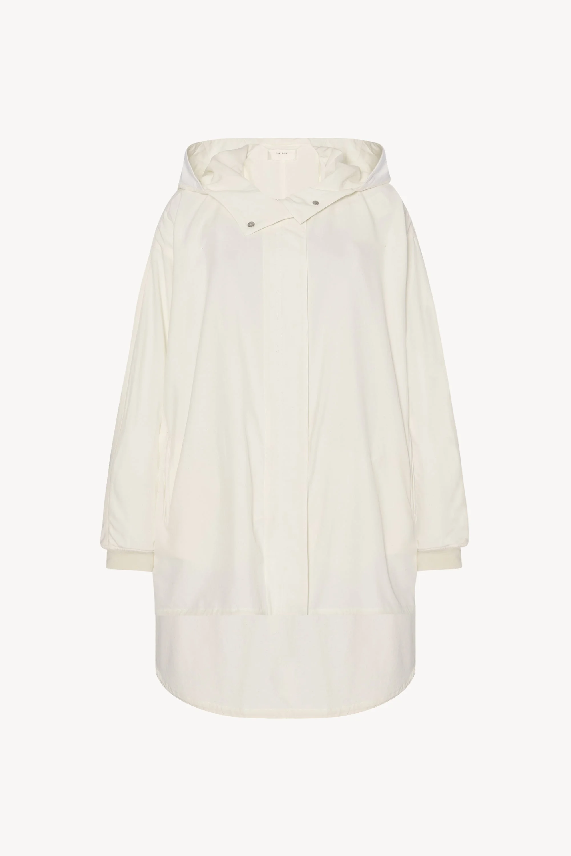 Oversized hooded parka in washed silk toile with ribbed cuffs, interior drawstring at waist, and concealed front placket with snap and zipper closure. More information - 100% Silk - Made in Italy - Style: 8968W3856OWH