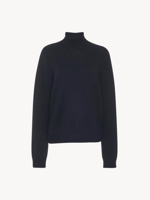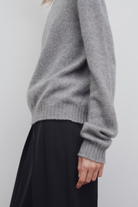 The Row Essentials sweater in foamy cashmere knit with mock turtleneck and ribbed neckline, cuffs and hem.More information - - Signature stitching along the back - - 100% cashmere - - Made in Italy - - Style: 5585Y187MHG