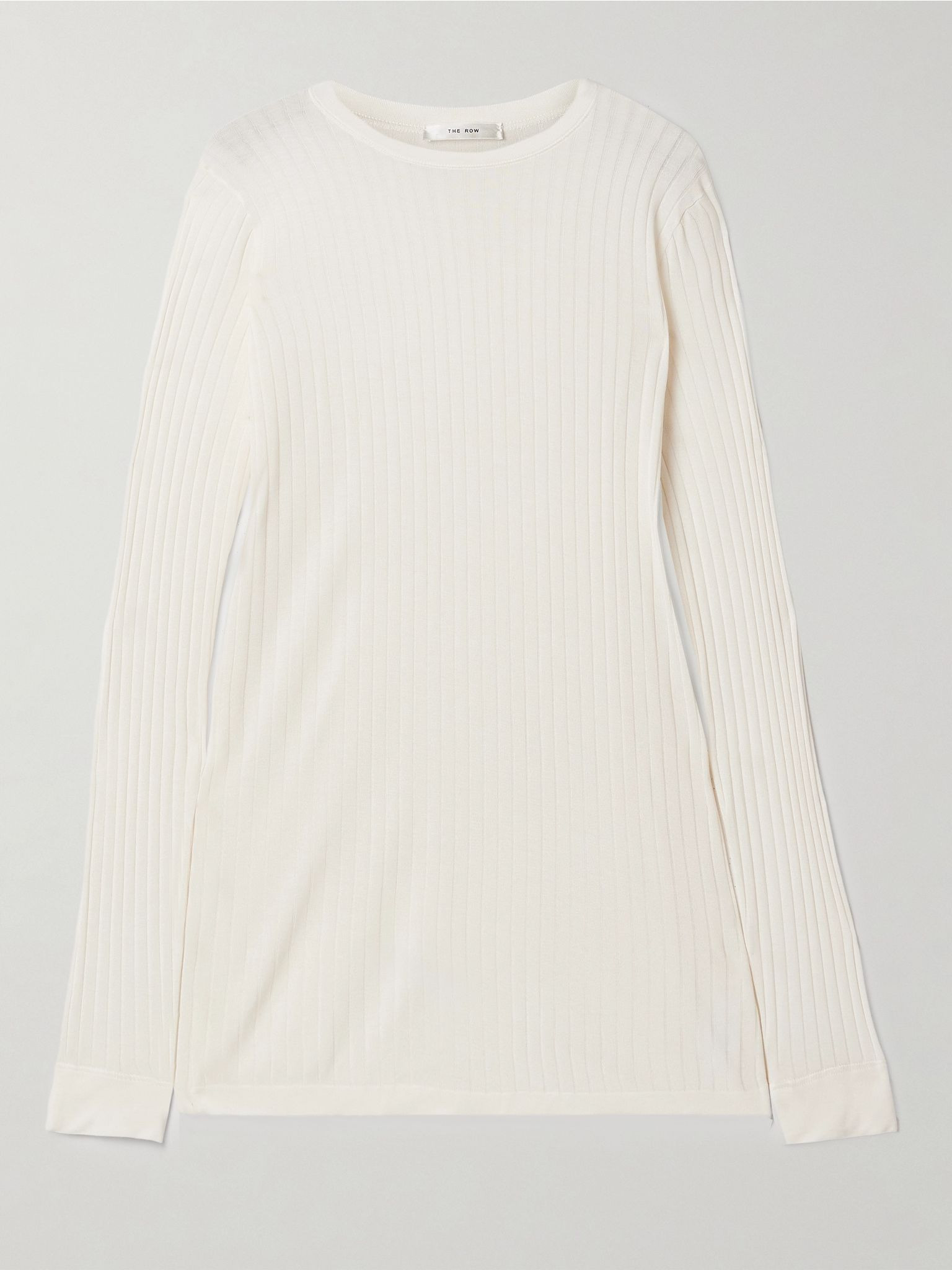 Lightweight and soft, The Row's 'Keya' sweater is the perfect layering piece. It's been made in Italy from ribbed-knit that's blended with a touch of silk and comes in a versatile ivory. The longer hem ensures easy tucking. Size & Fit - Fits true to size, take your normal size - Designed for a slim fit - Lightweight knit - Model is 177cm/ 5'10" and is wearing a size Small Details & Care - Ivory ribbed-knit - Slips on - 88% viscose, 12% silk