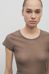 Relaxed t-shirt in ultrafine textured cashmere with rounded neckline, cap sleeves, and slim fit. More information - 100% Cashmere - Made in Italy - Style: 8971Y935KHK