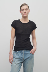 Relaxed t-shirt in ultrafine textured cashmere with rounded neckline, cap sleeves, and slim fit. More information - 100% Cashmere - Made in Italy - Style: 8971Y935BLK