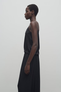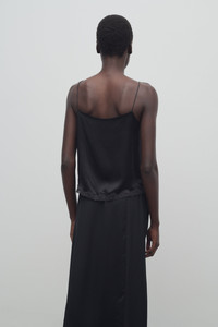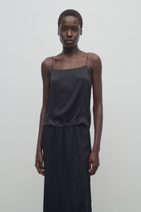 Camisole top in silk charmeuse with thin spaghetti straps, lace-trimmed hem, and straight fit. More information - 100% Silk - Made in Italy - Style: 8710W3786BLK