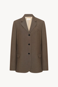 Single-breasted tailored jacket in fluid virgin wool and silk suiting with notch lapel, front flap pockets, and horn button closure. More information - 76% Wool, 24% Silk - Lined in 100% Silk - Made in Italy - Style: 8973W3829FXB
