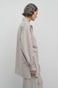 Relaxed button-up in soft brushed wool cashmere flannel with boxy fit, exposed front placket, and classic hem finish. More information - Mother-of-Pearl buttons - 90% Wool, 10% Cashmere - Made in Italy - Style: 8461W3301LPB