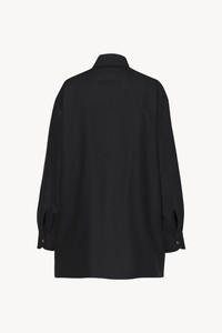 Relaxed button-up in soft brushed wool cashmere flannel with boxy fit, exposed front placket, and classic hem finish. More information - Mother-of-Pearl buttons - 90% Wool, 10% Cashmere - Made in Italy - Style: 8461W3301BLK