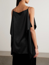 The Row's 'Koray' top offers a quietly dramatic take on evening minimalism. Cut from glossy silk-satin, it has a draped handkerchief-style shape with drawstring ties at the hem to adjust the fit. Wear yours with tailored pants or floor-skimming skirts.