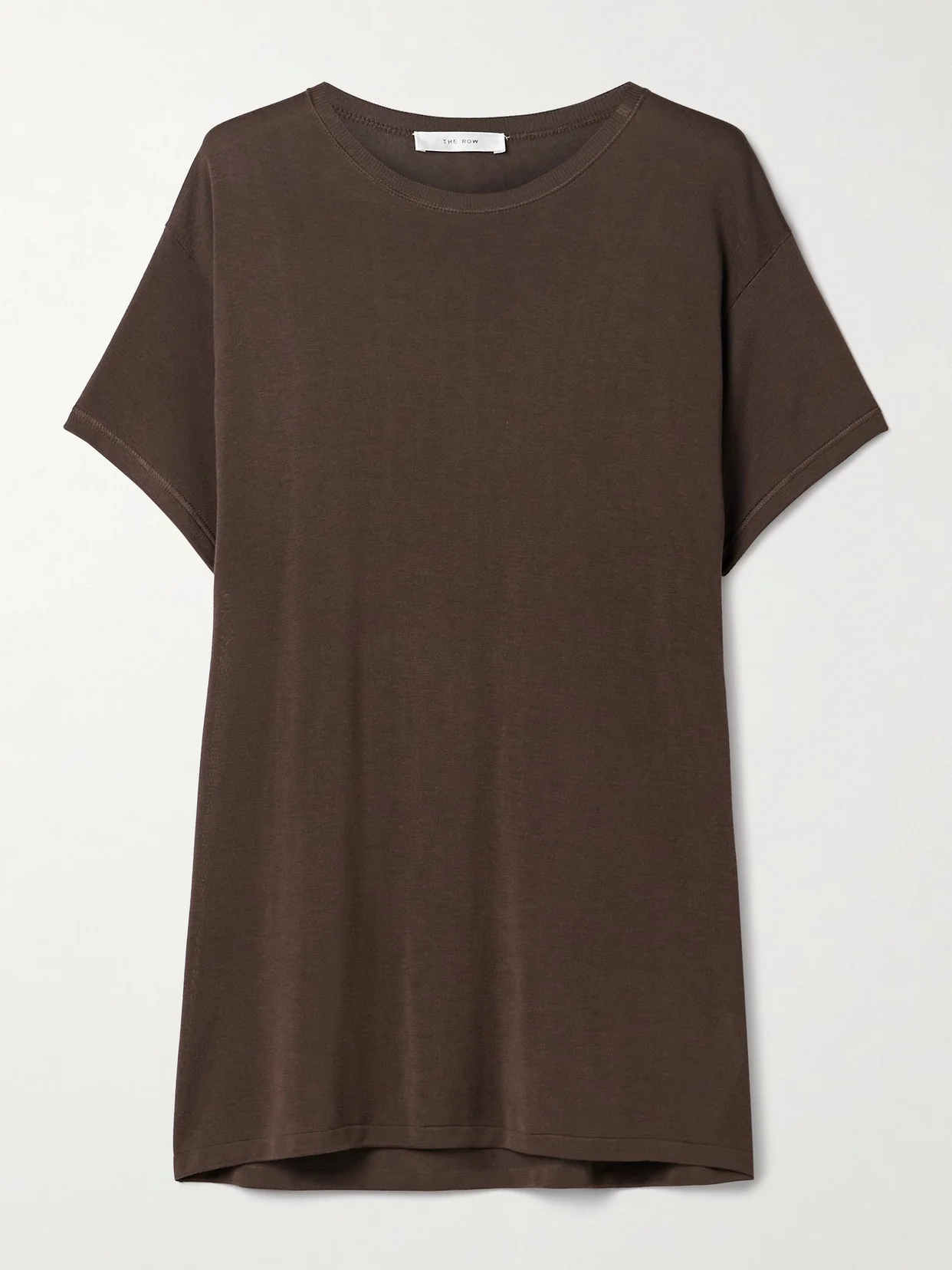 The Row is an expert when it comes to quality basics you'll reach for over and over, like this 'Kota' T-shirt. It's been made in Italy from fine jersey with a touch of silk for an even softer, fluid drape. The longline shape looks especially cool half-tucked into tailoring or jeans.