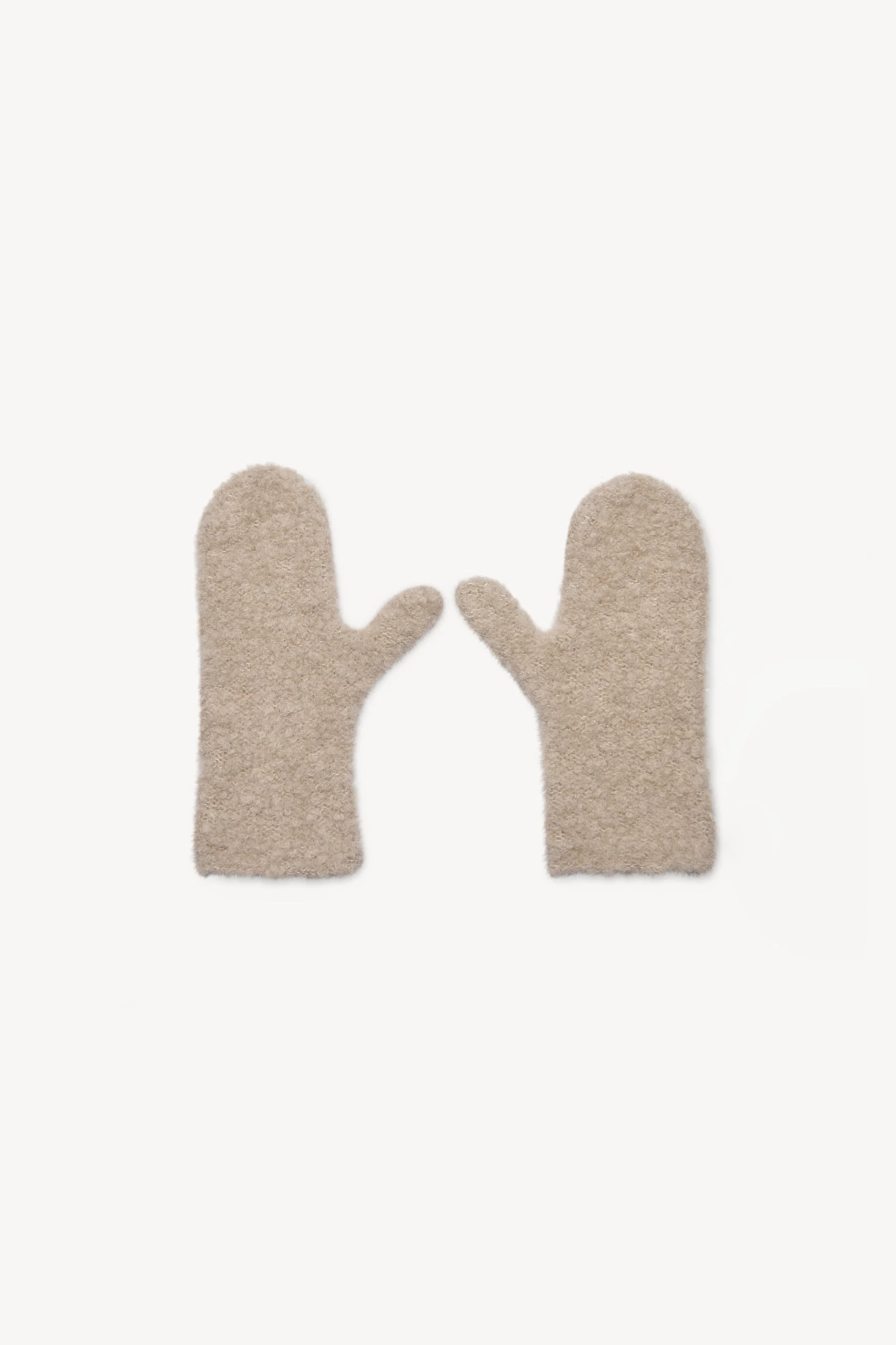 Classic knit mittens in textured alpaca and cashmere boucle with clean edge finish. More information - 10.25 x 4 in. - 48% Cashmere, 32% Alpaca, 20% Silk - Made in Italy - Style: 10075Y957BEI