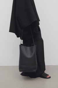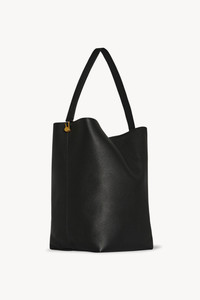 Classic tote bag in grained calfskin leather with interior tie closure, flat handle, and custom hook hardware. More information - 15 x 17 x 8 in. - 100% Calfskin Leather - Lined in Suede - Made in Italy - Style: W1696L129BAG