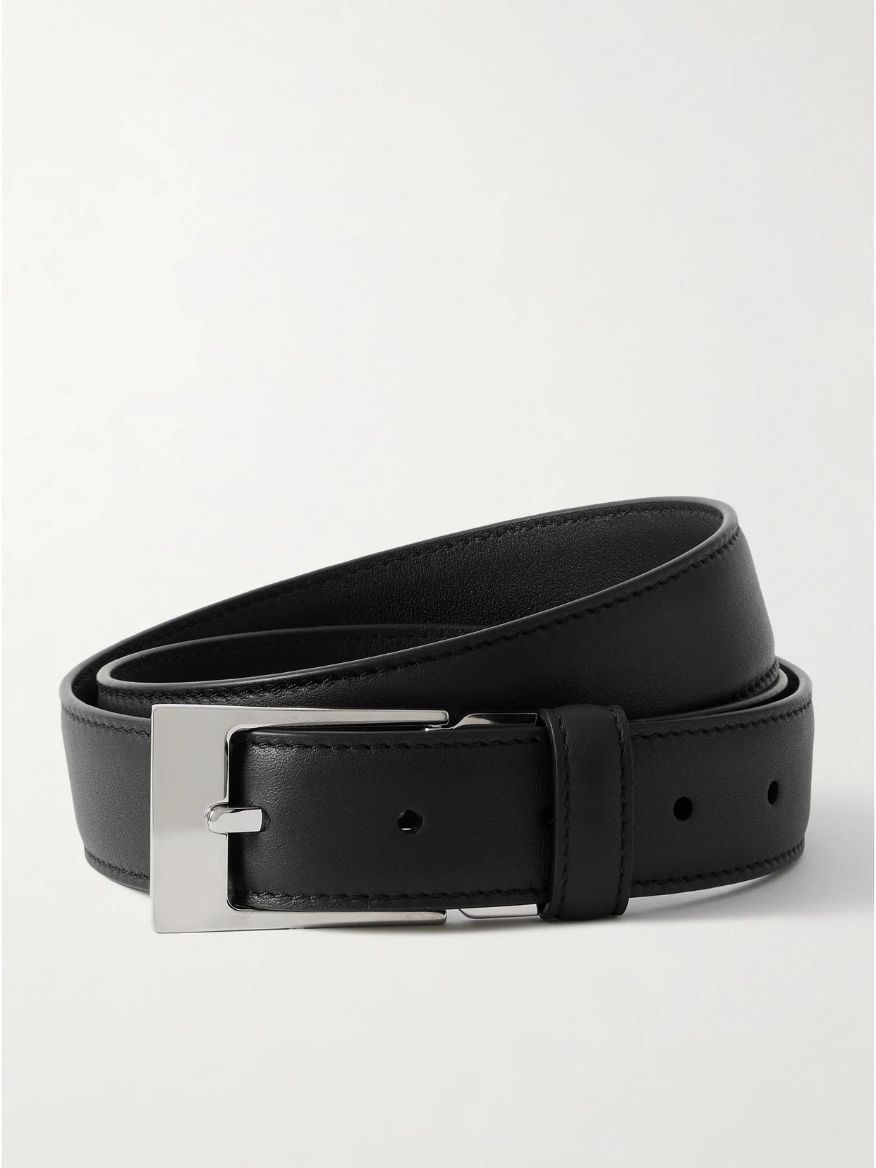The Row's belt has all the hallmarks of an investment piece. Crafted from supple black leather, it's minimally detailed with an angular buckle in polished hardware.