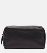A deep affection for refined and timeless fashion influences The Row's dedication to craftsmanship and quality. This pouch is a compact style made in Italy from black leather with silver-toned hardware. Product Details - Material: calf leather - Lining: lamb leather - Made in Italy - Color: black - Designer color name: Black Ans - Item color: black - Internal details: single compartment - Closure: zipped top - Item number: P01114999 Size & Fit - Height 10,5cm-4" - Width 19cm-7.5" - Depth 5cm-2"