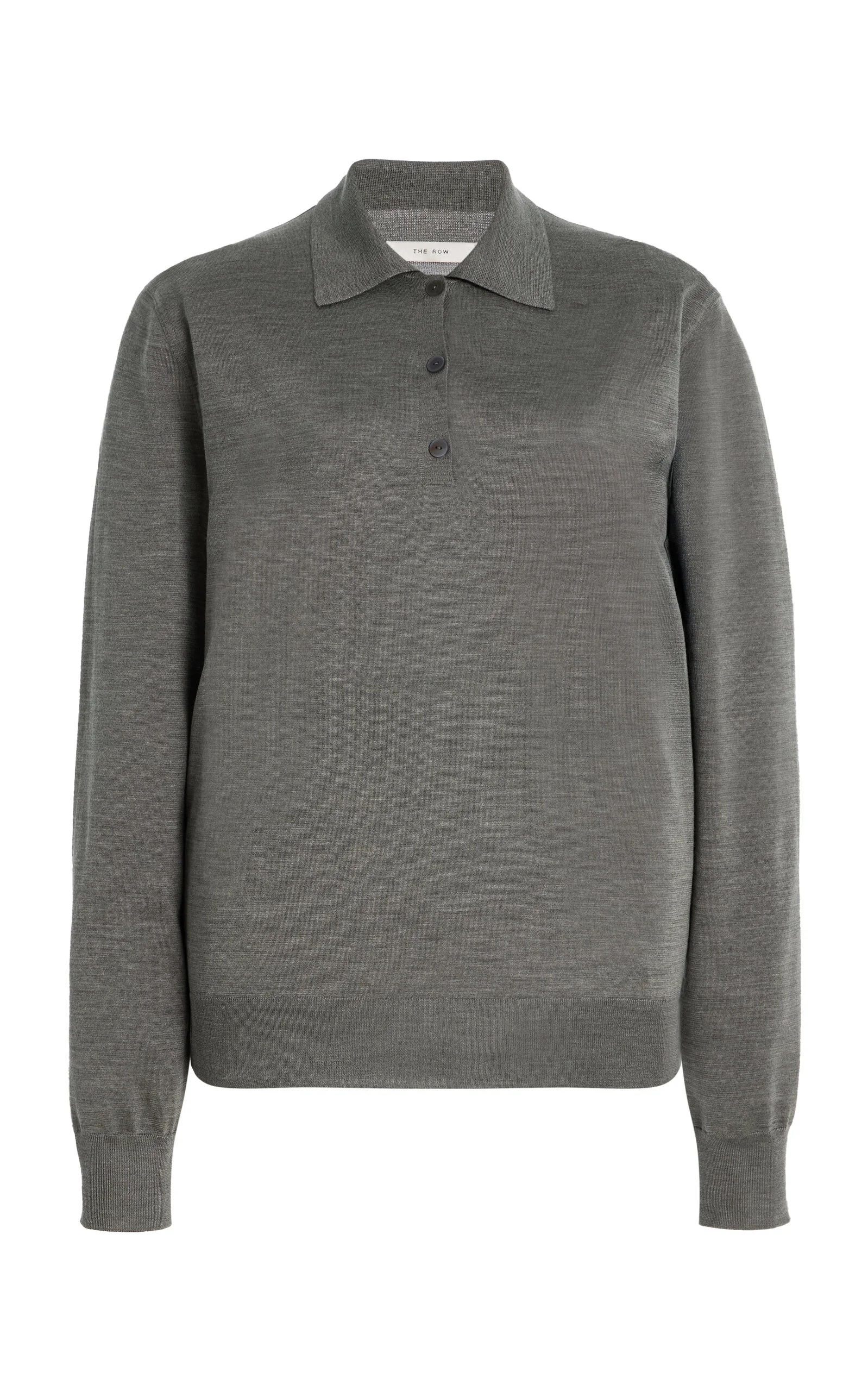 With a focus on exceptional fabrics, impeccable details and uncompromising quality, The Row explores the strength of simplistic shapes, resulting in timeless staples with subtle irreverence. Crafted from silk, the ‘Lilienne’ takes on a classic polo shirt silhouette with a pointed collar and short button fastening. It’s woven from a lightweight knit, suitable for layering. PRODUCT DETAILS - Fall/Winter ‘25 - Button fastening - Composition: 100% silk - Dry clean - Designer Color: Grey Melange - Made in Italy SIZE & FIT - Our model is wearing a size Small - Model is 5'10” with a 31” bust, 23.5” waist, and 33.5” hip - Fits true to size, our fit specialist recommends taking your normal size