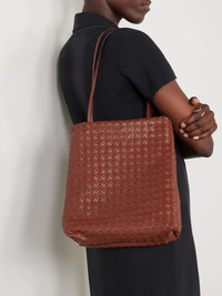 The Row's 'Lilou' bag has been woven in Italy from strips of textured-leather in a brick shade the label calls 'Pecan'. It has slim straps that sling comfortably over your shoulder and has enough space inside for your phone, a novel and sunglasses. Details & Care - Brick textured-leather (Goat) - Shoulder straps - Internal slip pocket - Leather lining - Open top - Designer color: Pecan