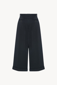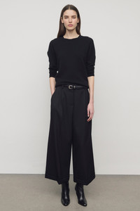 Tailored low-rise trouser in fluid Japanese wool gabardine with wide cuffed leg, front double pleats, and side slash pockets. More information - 100% Wool - Made in Italy - Style: 10865W4369BLK