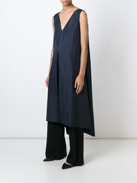 long sleeveless top Navy silk long sleeveless top from The Row featuring a v-neck and a v cut out at the back hem. Made in United States Composition Silk 100%