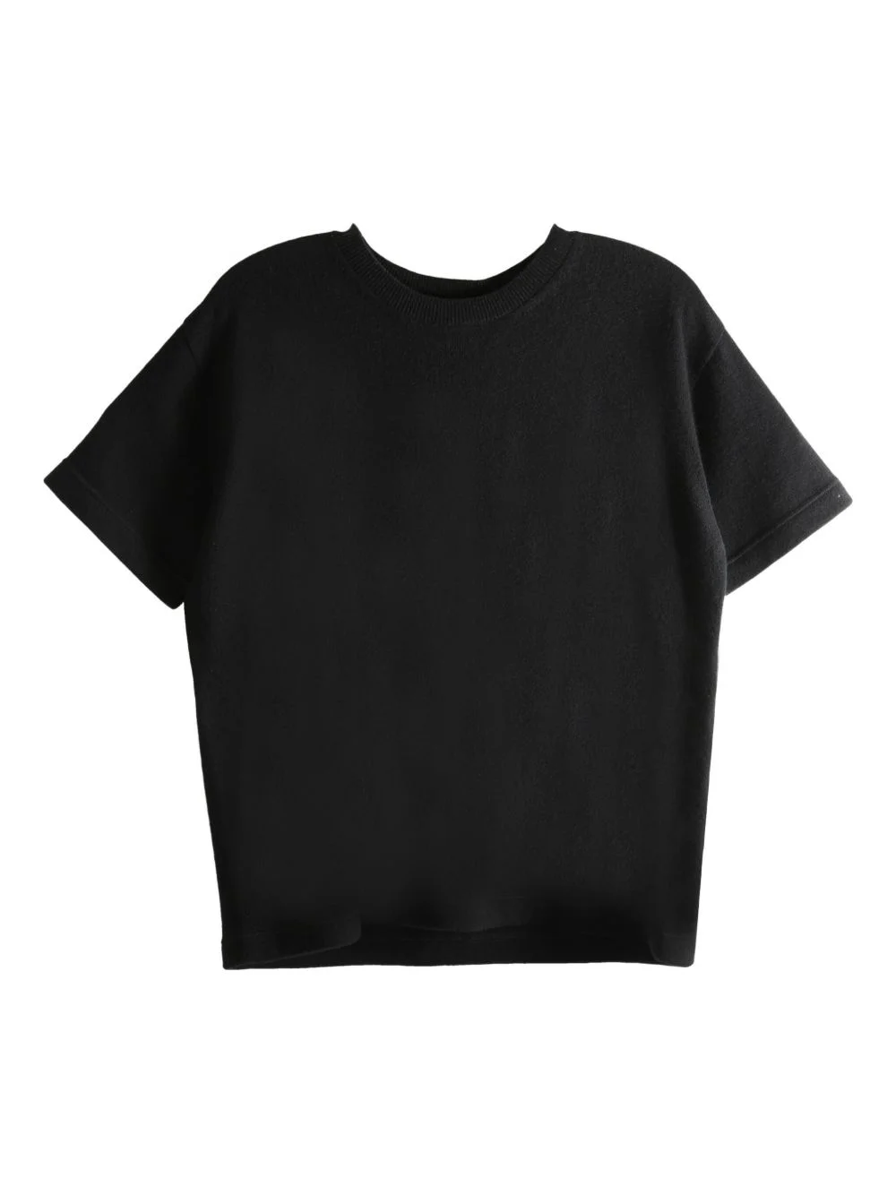 short-sleeve knit top Highlights - Black - Short sleeves - Round neck - Straight hem - Knit texture - Boxy shape Made in Italy