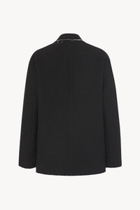 Single-breasted jacket in textured cotton wool tailoring with layered contrasting collar, notched lapel, and raw edge construction. More information - Interior buttoned welt pocket - Two horn button closure - 58% Cotton, 37% Wool, 4% Polyamide, 1% Elastane - Lined in 100% Silk - Made in Italy - Style: 8473W3472DWG