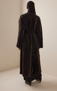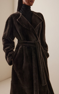With a focus on exceptional fabrics, impeccable details and uncompromising quality, The Row explores the strength of simplistic shapes, resulting in timeless staples with subtle irreverence. Soft and luxurious, the 'Madelina' coat has a longline robe silhouette made from lambskin shearling to keep you warm (and oh so chic) this winter. PRODUCT DETAILS - Fall '25 - Button fastening - Composition: 100% lambskin shearling; Lining 100% silk - Dry clean - Made in Italy SIZE & FIT - Our model is wearing a size 2 - Model is 5’9.5" with a 32" bust, 24" waist, and 35.5" hip