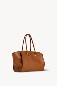 Softly structured tote bag in polished saddle leather with tubular handles, gusseted side panels, and top zipper closure. More information - 14 x 6.3 x 10.43 in. - Handle: 7.48 in. drop - Interior pocket with zipper closure - 100% Calfskin Leather - Lined in 100% Cotton - Made in France - Style: W1800L72CUT